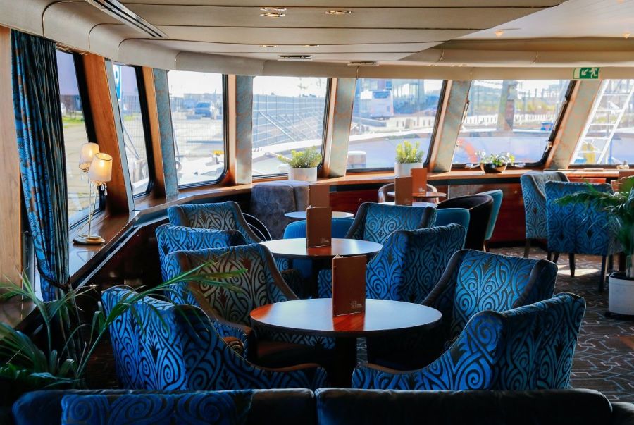 На разположение на гостите са ресторант, бар, зона с камина и кресла, машина за кафе и чай на самообслужване през целия ден, библиотека, сауна и фитнес, слънчева тераса със шезлонги, безжичен интернет срещу заплащане. Корабът разполага с 3 палуби, капацитетът е 110 гости.