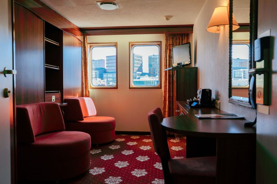Каютите на основна палуба са с легла, които през деня се вдигат и превръщат в удобни места за сядане. Всички те са с прозорци.
