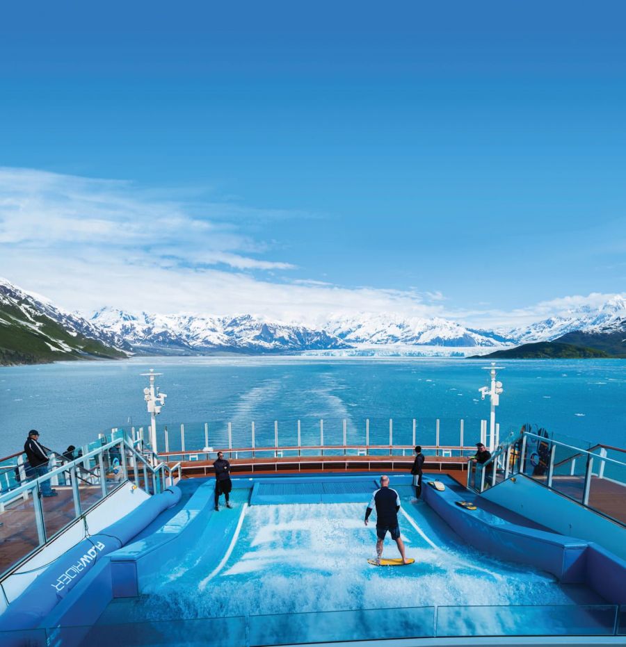 Фитнес, игрище за баскетбол и волейбол, тенис на маса, стрелба с лък, блъскащи се колички. На борда може да опитате някои от атракциите, с които да повишите адреналина си: стена за скално катерене, симулатор на скай дайвинг RipCord® от iFLY®, 12-метров сърф симулатор FlowRider®* или внушителната капсула North Star®, от която се разкрива 360-градусова гледка на повече от 90 м. височина.