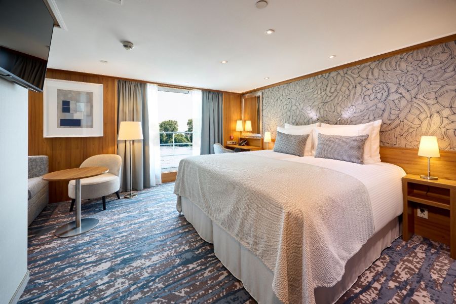 66 двойни каюти, 14 единични каюти, 13 двойни суити и 1 мастър суит, разположени на 3 палуби. Каютите на средна и висока палуба са с френски панорамни прозорци. Каютите разполагат с 2 единични или 1 двойно легло, баня и тоалетна, телевизор, климатик. Единичните каюти са с площ от 11 м2, двойните 16 м2, суитите – 24 м2, мастър суита – 32 м2.