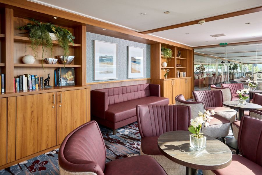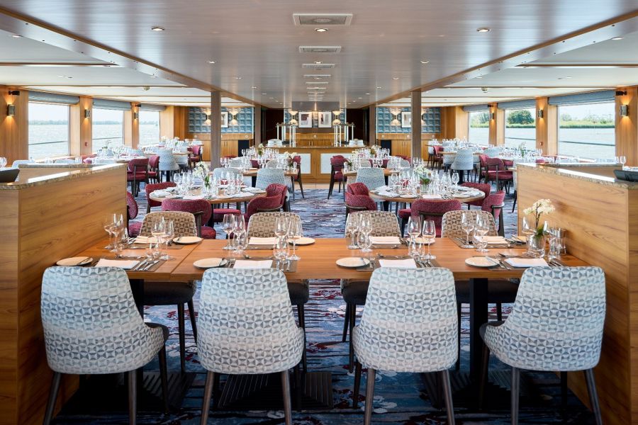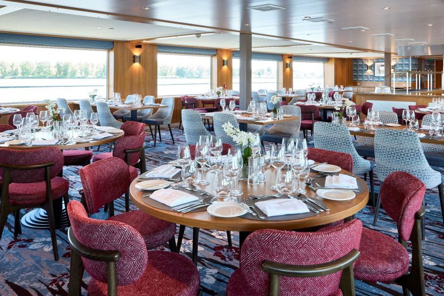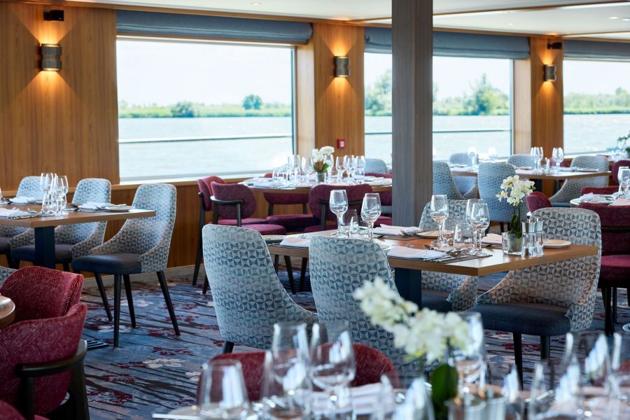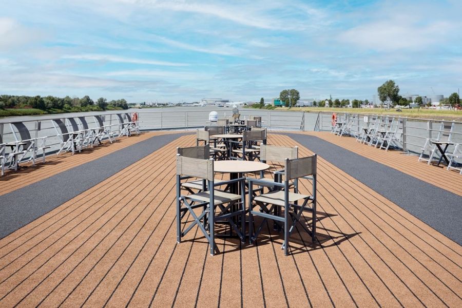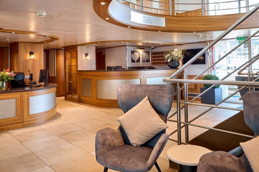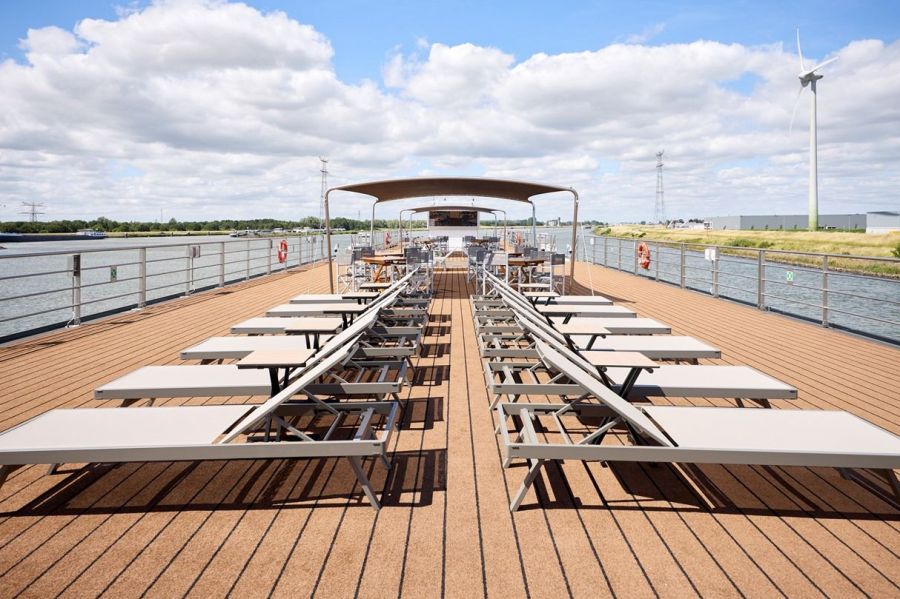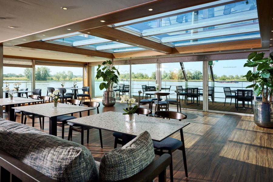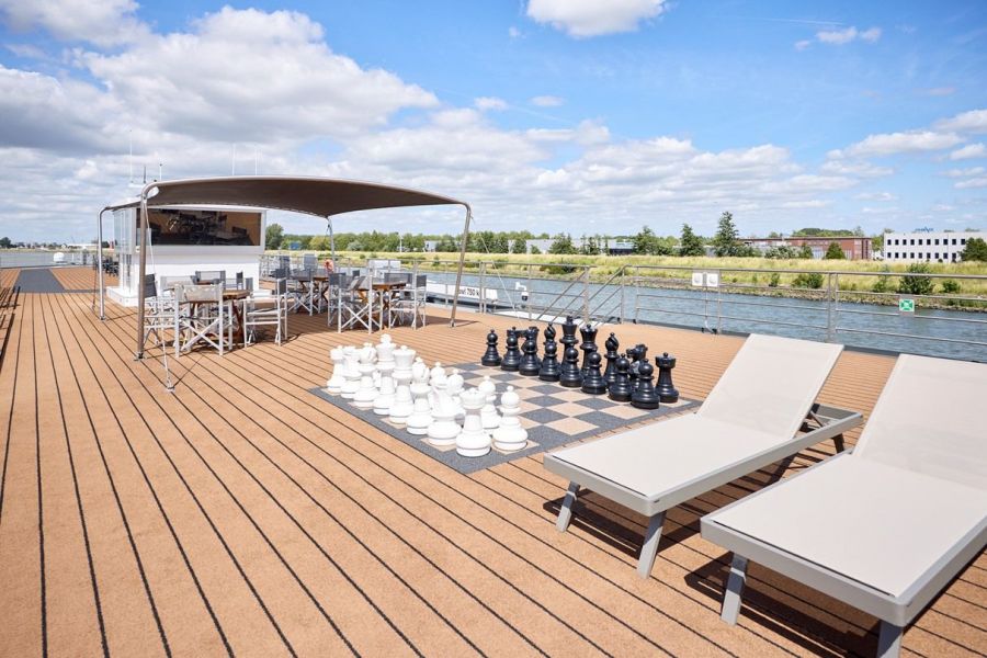 На борда ще откриете, ресторант, панорамен бар, слънчева палуба с шезлонги и басейн, малък фитнес и сауна.