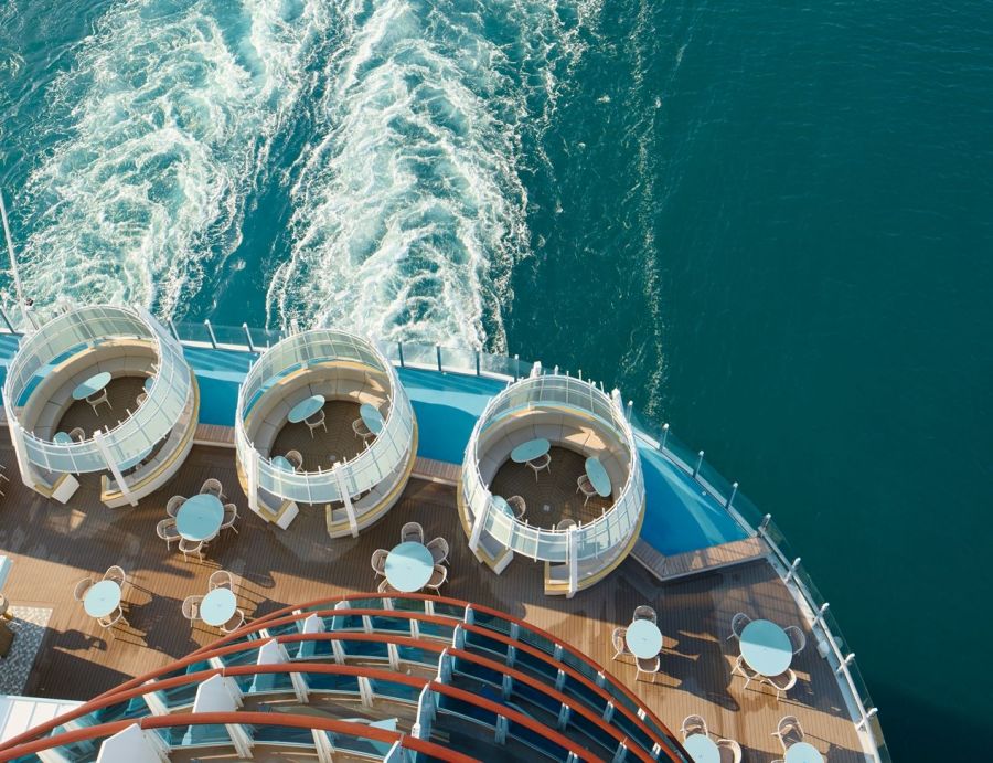 Отпуснете се на шезлонгите около басейните на откритата палуба или посетете пързалките на аквапарка.