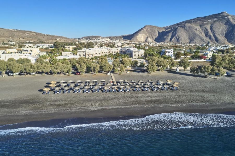 Едно от най-популярните ни места за настаняване в Периволос.Този крайбрежен хотелски комплекс е разположен на известния космополитен плаж на Периволос, на югозападната страна на Санторини. Той разполага с най-голямата зона с басейни от всички хотели в Периволос - Периса и неговата частна зона на плажа с черен пясък в Периволос с шезлонги и чадъри, които са безплатни за гостите на хотела. Хотелът е разположен в близост до туристическото селище Периса със своите магазини и таверни, както и дълъг плаж със скалата Меса Вуна, която се подава от водата.