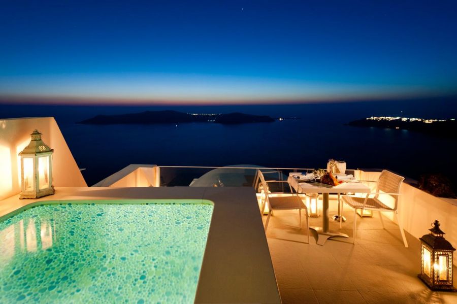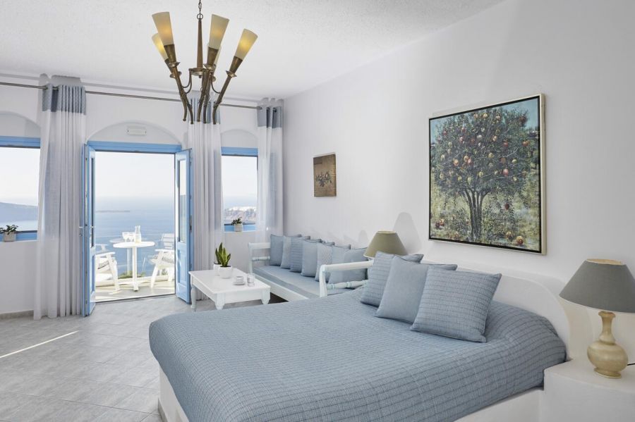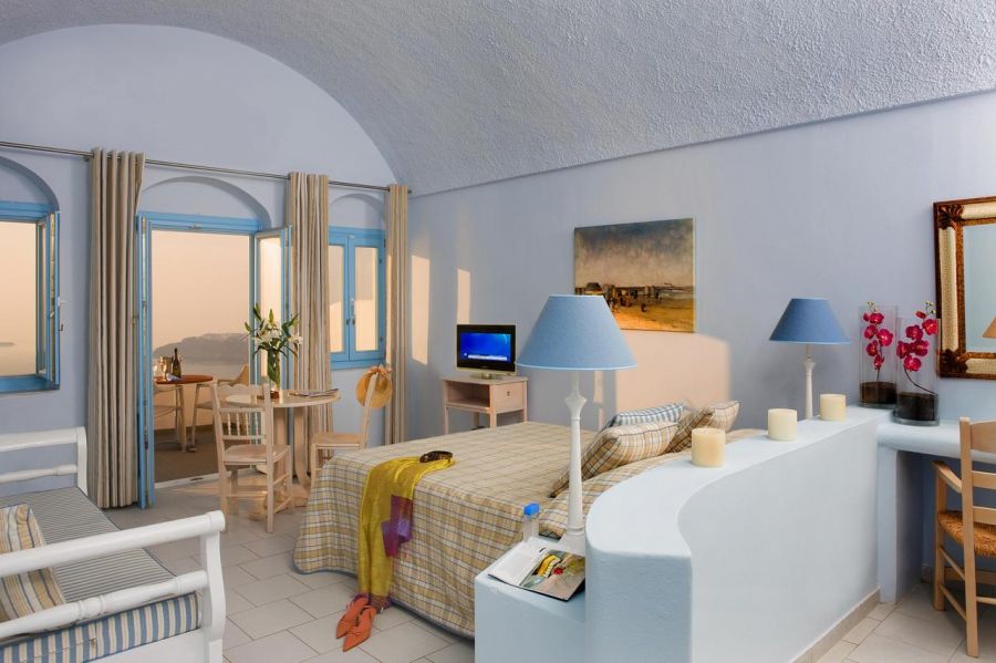 Хотелът се намира в Имеровигли и предоставя уникална гледка към калдерата на Санторини. Столицата на острова Фира е само на 4 км, летището на Санторини - на 8 км, a централното пристанище Атиниос - на 12 км.