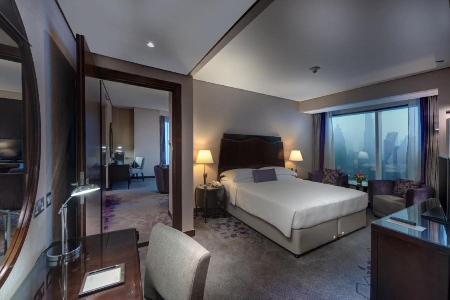 Хотелът разполага с 462 луксозни стаи и суити с панорамен изглед към Дубай и небостъргача „Бурдж Халифа“. Guest room (28 m2), Burj Khalifa view room (28 m2),Large corner room (32 m2), Large corner Burj Khalifa (32 m2), Spacious room (38 m2), Spacious hight floor room (38 m2), One Bedroom suite (60 m2). Spacious High Floor one bedroom suite (75 m2).