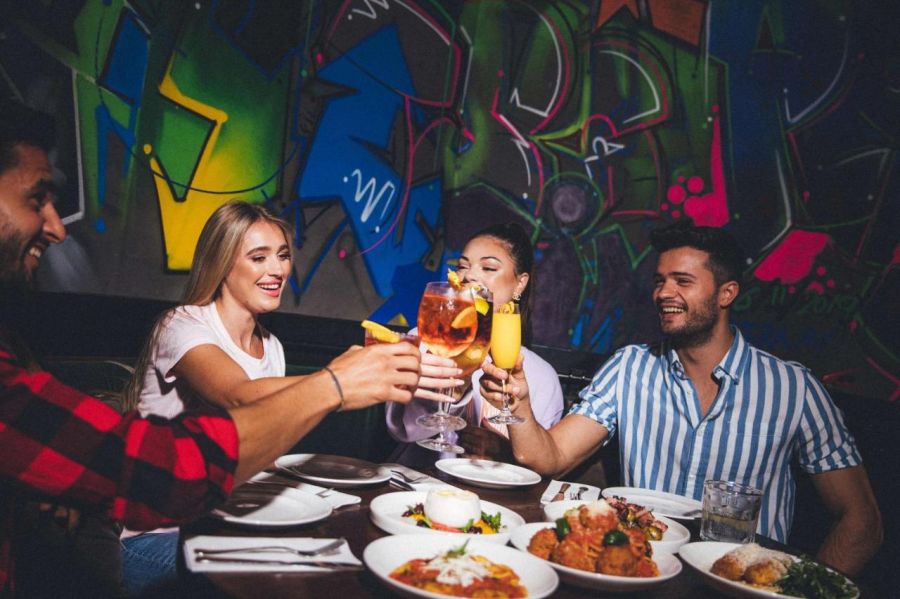 Гръцки ресторант OIA Greek Restaurant & Pool Lounge - вдъхновен от спиращата дъха красота и жизнената култура на гръцкия остров Санторини, OIA ви носи вкуса на Егейско море в сърцето на Дубай. Пицария Motorino Pizzeria е част от световноизвестна верига в Ню Йорк. Спортен бар Offside в който можете да гледате на голям екран - футбол, голф, ръгби, конни надбягвания както да се насладите на тематични вечери, музика на живо, DJ и вечерни игри. IL Motto - предлага домашно приготвени сладкиши, леки закуски, италиански вина и тематични вечери. Aqua Restaurant / Bar предлага тематични вечери и брънчове.