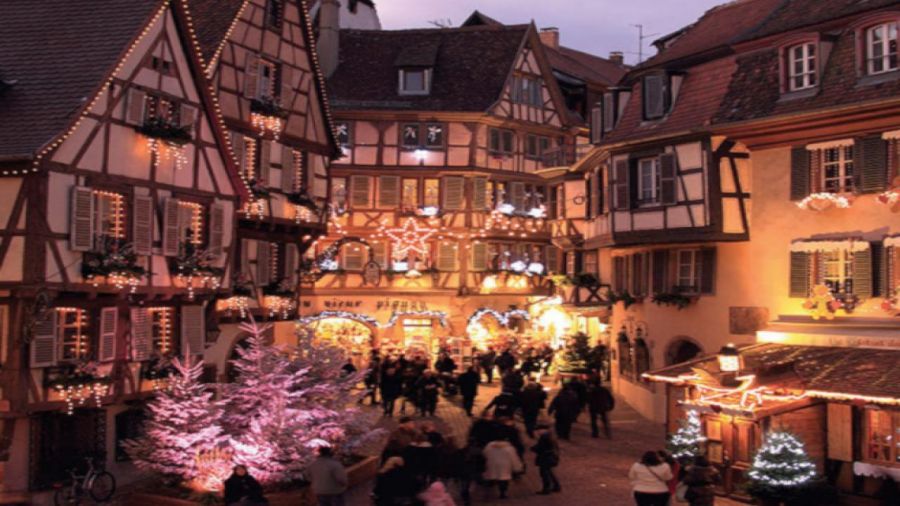 Еднодневна екскурзия "Колмар и пътят на виното". Отпътуване за Колмар - "малката Венеция на Франция". Разходка из тесните улички, осветени от празнични светлини, и цветните къщи с традиционна елзаска архитектура-Къщата с главите, къщата Пфистер, църквата Сен Мартен, каналите на р.Лаух са само част от пешеходната ни разходка в бижуто на Елзас - приказния Колмар.