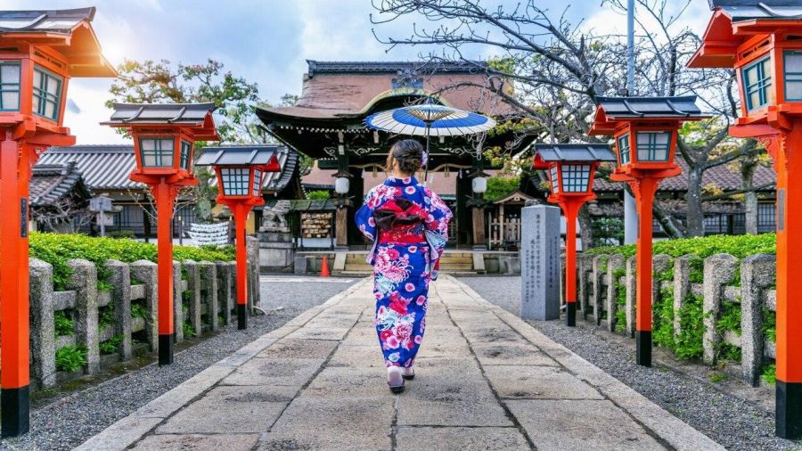 Пристигане в Киото - единственият град, пощаден от бомбардировките по време на Втората световна война с над 2000 храма (1700 будистки храма и 300 шинтоистки светилища).