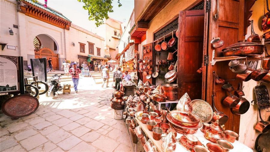 Полудневна обиколка на Фес, включваща посещение на Медината Fez el Bali – огромна лабиринтна мрежа от криволичещи алеи, обградени от древни стени. Въпреки, че достъпът на автомобили не е разрешен, суматохата, шума и виковете се носят навсякъде. Миризмата на кожа, деликатния аромат на ориенталски парфюми, барбекю и сладкиши ще ви потопят дълбоко в атмосферата на този имперски град. Посещение на фонтана Nejjarine - най-известният от мозаечните фонтани на Медината, който се намира в традиционен дърводелски квартал, където навсякъде във въздуха се носи аромат на кедрово дърво.