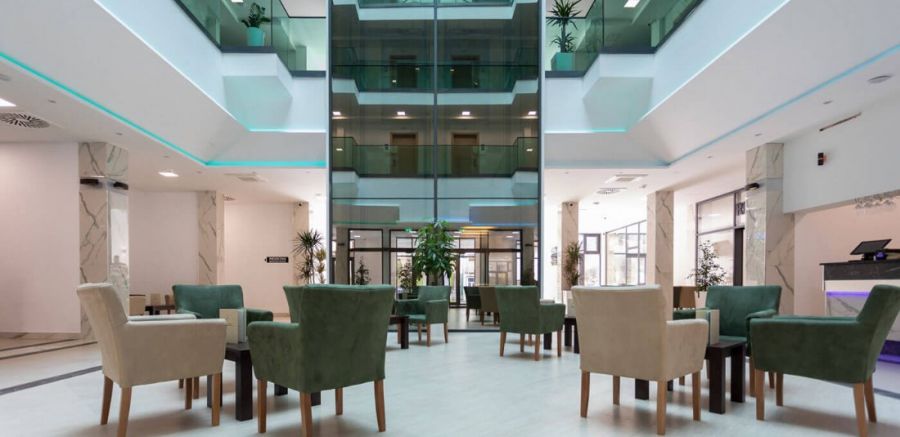 Уелнес центърът на хотела предлага вътрешен и външен басейн с минерална вода, джакузи, инфрачервена и финландска сауна, парна баня, тепидариум - топло помещение с подово отопление и подгреваеми седалки, солна стая; с доплащане се прадлагат процедура като масаж, електротерапия, магнетотерапия, хидротерапия, калолечение, ултразвукова терапия, кинезитерапия;