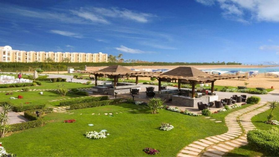 Комплексът е построен в арабски стил с модерно обзаведени стаи.