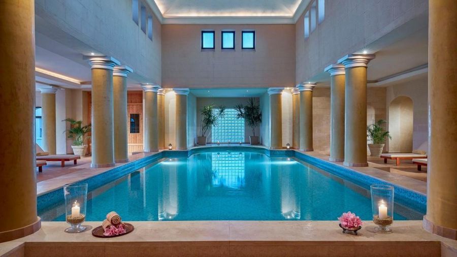 Басейнът към хотела е оформен стилно като числото осем точно в центъра на хотела. Отоплява се в периода ноември-април, а за децата има и отделен басейн. Хотелът разполага и с мини аквапарк с улеи, пързалки и спирала. Има 5 големи пързалки за големи и 1 пързалка за деца.