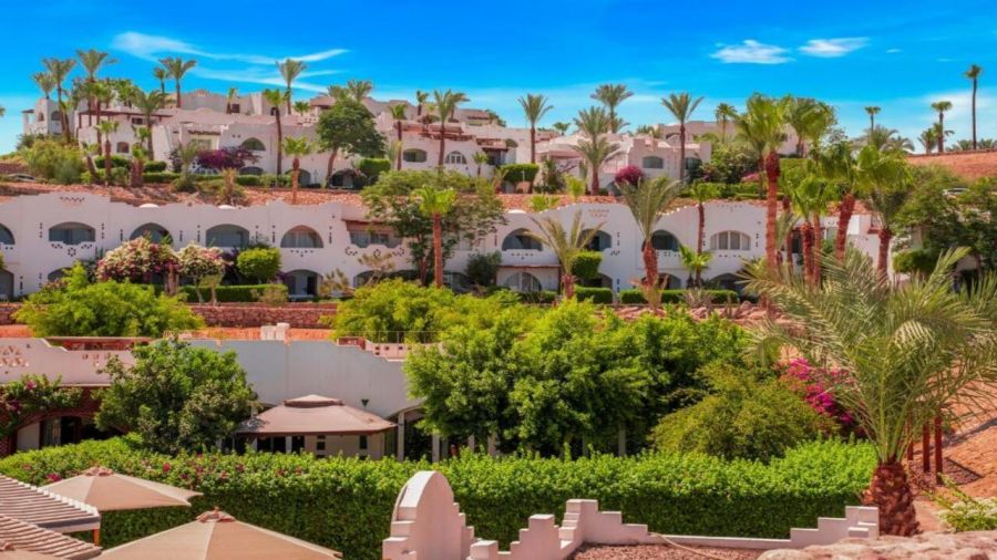Domina Coral Bey Resort 5* Това е най-големия комплекс на територията на Шарм Ел Шейх с площ над 1000 000 кв.м разпределени в 6 квартала. Предвижването е с колички. Нашите туристи се настаняват в квартал Oazis или Bella Vista в стандартни стаи, като 90 % от тях са с гледка море или басейн . Настаняване на дете или трети възрастен е на разтегателен диван.