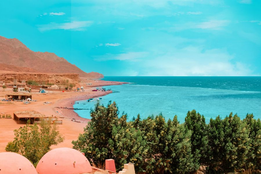 Намира се на 95 км от летището, на 8 км от Дахаб, на брега на морето.