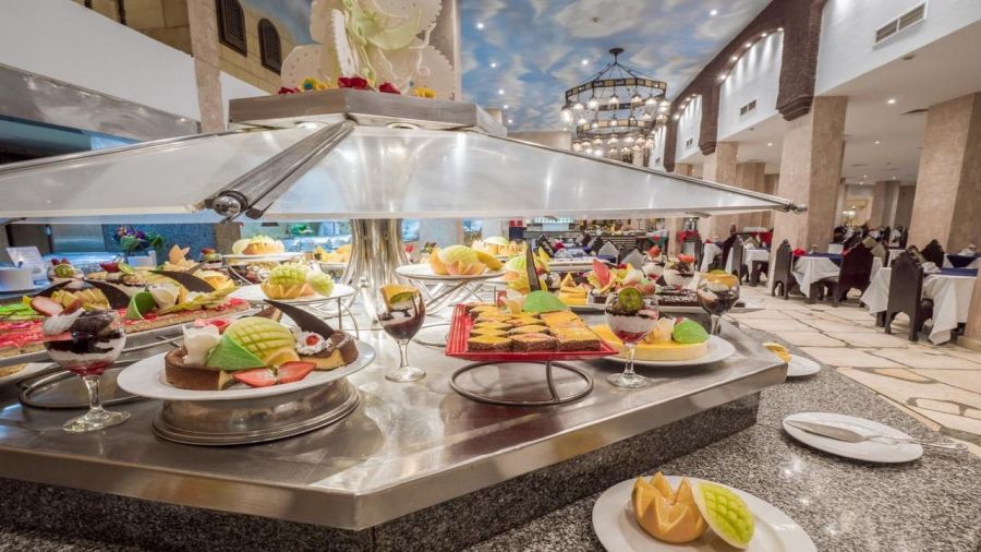 Концепцията е All Inclusive – закуска, обяд, вечеря на блок маса, леки следобедни закуски, сладкиши, местни алкохолни и безалкохолни напитки в определени часове от деня. Хотелът разполага с основен ресторант и няколко а ла карт ресторанта (италиански, ориенталски и рибен), както и разнообразни барове – лоби бар, бар на плажа, бар при басейна.