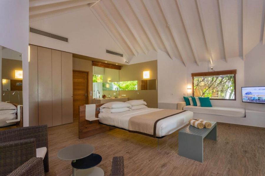 Beach Villa (50 кв. м) – Елегантните вили предоставят на гостите си възможността да се потопят в атмосферата на малдивските плажове с директен достъп до тях. Плажните вили са оборудвани с външен душ.