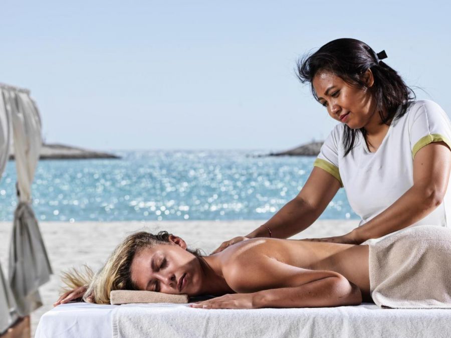 Хотелът разполага със собствен плаж Laguna beach, на който се допускат само възрастни и само гости на хотела. Разполага с бар на плажа. Чадъри, шезлонги и хавлии - безплатно на плажа и при басейните.