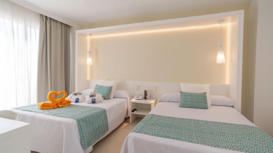 Семейства с деца — големи стаи с две големи легла, детски клуб, анимация и плитък пясъчен плаж пред хотела.