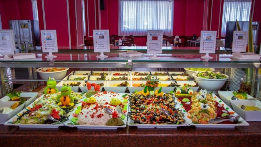 Основният ресторант предлага богата шведска маса с национални и международни ястия, като менюто се обновява на всеки две седмици. Ресторантът предлага и тематични вечери в определени дни.