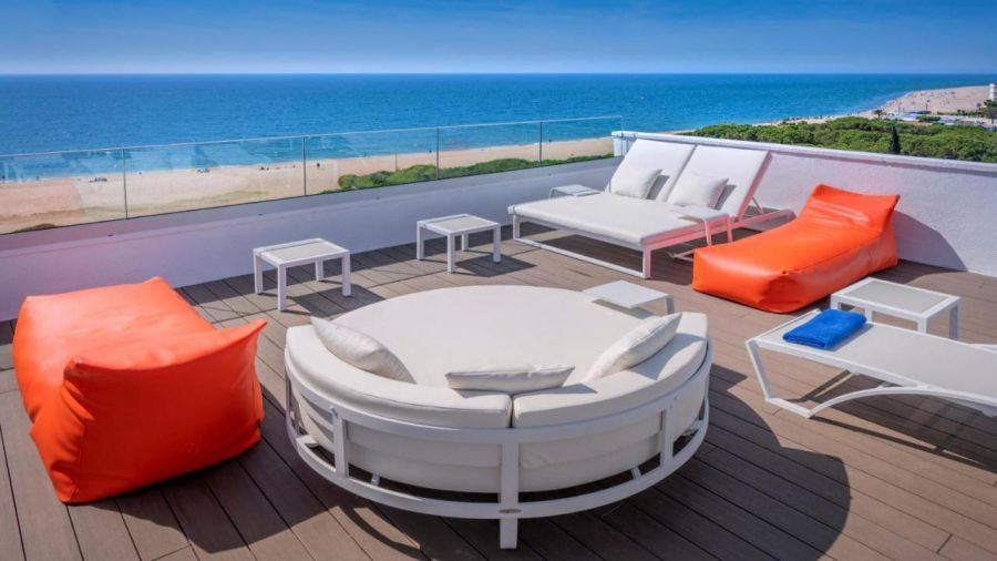 панорамен басейн на покрива (само за гости над 18 г.), предлагащ впечатляваща гледка към Средиземно море,