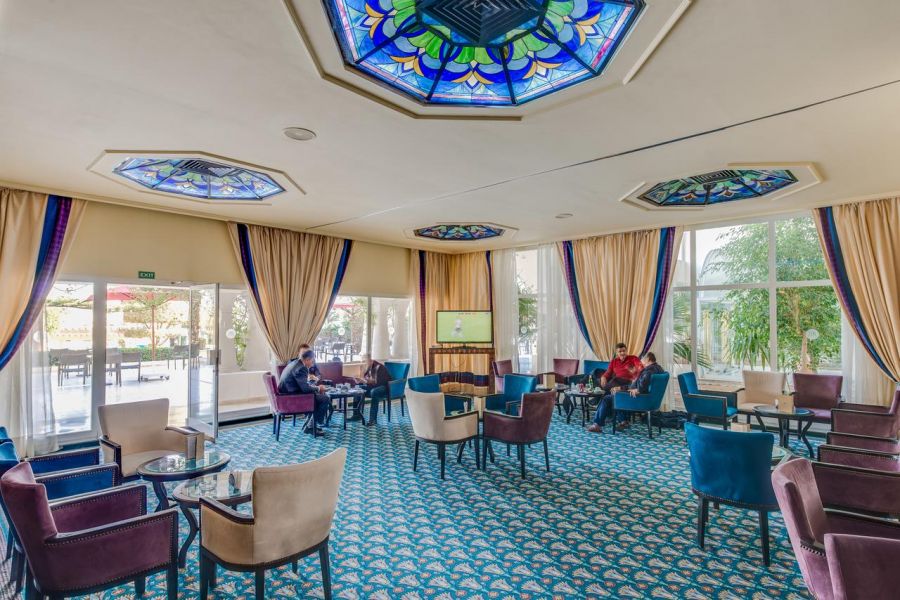 Основен ресторант Shehrazad, а ла карт ресторант Alhambra (платен, едно безплатно посещение на престой, след предварителна резервация), а ла карт Capri с италианска кухня (платен, едно безплатно посещение на престой, след предварителна резервация), бар басейн Al Khayem (през висок сезон), лоби бар Al Waha, снек ресторант Murjana, мавританско кафене Ali Baba (срещу заплащане), 3 открити басейна, 1 закрит отопляем басейн, 2 тенис корта, лека анимация, денонощна рецепция, СПА център, обмяна на валута, 2 конферентни зали.