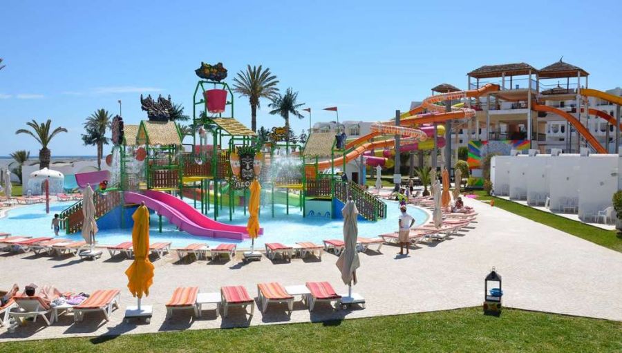 Основен ресторант Al Walima, платен а ла карт ресторант Al Cham (либийска кухня, 1 безплатно използване по време на престоя с предварителна резервация), ресторант Dolce Vita (италианска кухня, 1 безплатно използване по време на престоя с предварителна резервация), а ла карт ресторант Arabesque (тунизийска кухня, 1 безплатно използване по време на престоя с предварителна резервация), лоби бар, бар басейн, снак бар, американски бар (срещу заплащане), мавританско кафене (срещу заплащане), 3 открити басейна, единият от които е с водни пързалки, аква парк с 13 водни пързалки, анимация, 24 часова рецепция, СПА център, сувенирен магазин, обмяна на валута.