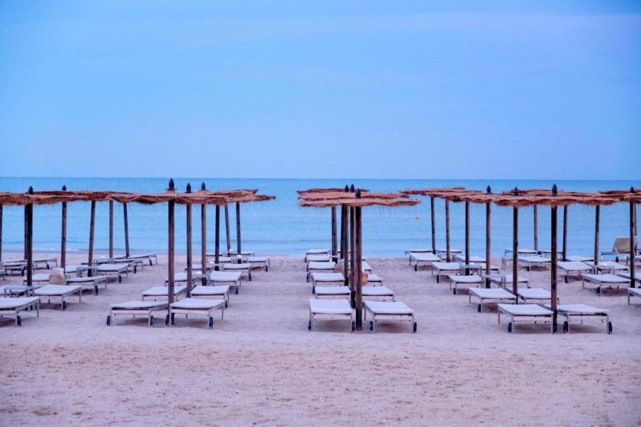 Частен, широк пясъчен плаж, първа брегова линия. Чадъри и шезлонги на плажа и при басейна - безплатно, плажни кърпи - безплатно. Сервират се плодове, вода, сокове, алкохолни напитки (при запитване).
