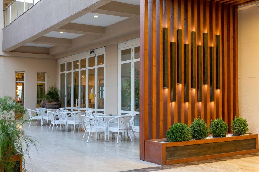 Оновен ресторант, 4 а-ла-карт ресторанта (с предварителна резервация, алкохолните напитки се заплащат допълнително), 6 бара, дискотека, 2 открити басейна, водни пързалки, магазини, СПА център, 16 конферентни зали, паркинг. За децата: 2 детски басейна, детска площадка, мини клуб (4–12 г.), дискотека, кино. Безплатни услуги: Сауна, турска баня, фитнес, аеробика, тенис корт, тенис на маса, анимационна програма, музика на живо, интернет (на лоби). Платени услуги: Масаж, пилинг, фризьор, магазини, интернет кафе, билярд, наем на ракети и топки за тенис, тенис корт, уроци по тенис, кану, водно колело, курс по гмуркане, моторни водни спортове. ПЛАЖ: Собствен, платформа – чадъри и шезлонги на плажа и при басейна – безплатно, плажни кърпи - срещу депозит.