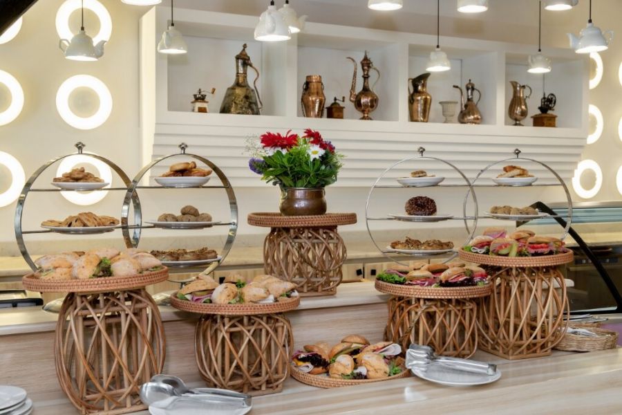 Основен ресторант, 3 а-ла-карт ресторанта (италиански, рибен, азиатски - срещу заплащане), 4 бара, сладкарница, 2 открити басейна (1333м²) , 1 закрит басейн (80м² ), СПА център , магазини, 6 конферентни зали , 2 тенис корта с изкуствено покритие, паркинг. За децата: детски бюфет, детски басейн (65м²) , детска площадка, мини клуб (4–12 г.), тиин клуб (12-16 г.), мини диско, детска стая за игри Безплатни услуги: Сауна, турска баня, фитнес, аеробика, плажен волейбол, баскетбол, тенис корт, тенис на маса, дартс, мини футбол, боча, телевизионна зала, анимационна програма, музика на живо, WI-FI интернет. Платени услуги: СПА център, масаж, пилинг, фризьор, лекар, детегледачка, химическо чистене, интернет кафе, видео игри , оборудване за тенис корт, осветление за тенис корта, уроци по тенис, билярд, водни спортове, велосипеди под наем, курс по гмуркане Настаняване с домашни любимци: до 5 кг. ПЛАЖ: Собствен, пясъчен удостоен със сертификат "Син флаг" . Чадъри и шезлонги на плажа и при басейна – безплатно, плажни кърпи - безплатно. Шатри на плажа (платено).