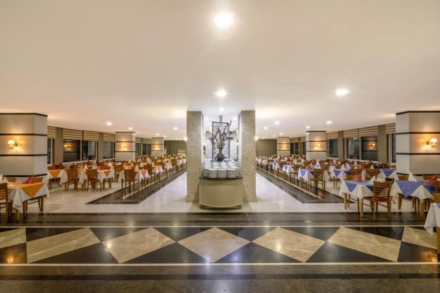 Хотела разполага с основен ресторант, 5 бара, 1 външен басейн, 1 закрит басейн и 1 детски басейн. Безплатни услуги: фитнес,аеробика, тенис на маса, дартс, турска баня, сауна, плажни хавлии,шезлонги и чадъри, конферентна зала, водни игри, един път в седмицата турско шоу, дискотека. За децата: анимация, мини клуб (04-12), детски басейн, детско меню. Платени услуги: масажи, сейф, джакузи, детски колички и столчета, спа, теледон и факс.