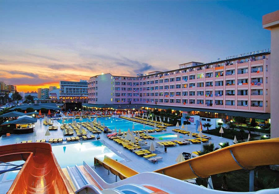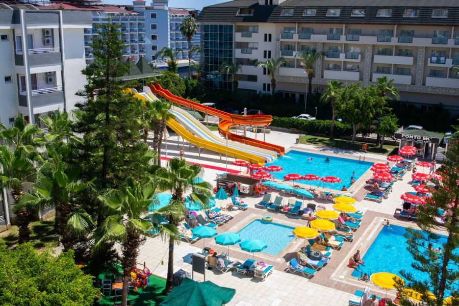 Намира се на 110 км от летище Анталия, на 120 км от центъра на Анталия, на 12км от центъра на Алания, на 1 км от селището Конаклъ, на брега на морето. Построен 2005 г. на обща площ от 17 000 м2. Последно реновиран 2021г.
