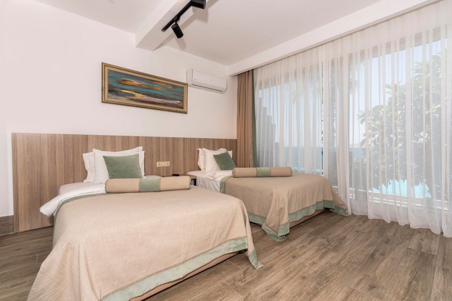 Хотелът разполага с общо 341 стаи, от които 217 Club Rooom разположени в 2-етажни къщички и Deluxe Room в основна сграда. Стаи Club Room (спалня, баня, изглед суша - 20 м²), Club Room Sea View (спалня, баня,с изглед море - 20 м²), Family Club Room Land View (2 спални,1 баня, с изглед суша - 35 м²), Deluxe Room Sea View (спалня, баня, с изглед море - 35-40 м²), Deluxe Family Room Sea View (2 спални, 1 баня, с изглед море - 55 м²).