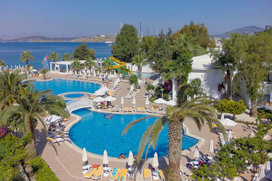 Намира се на 35 км от летище Милас, на 1 км от центъра на Бодрум. Построен върху обща площ от 32 000 м², последна реновация през 2015 г.