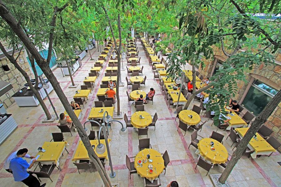 Оновен ресторант, 1 а-ла-карт ресторант (с предварителна резервация, платен), 4 бара - Lobby Bar, Pool Bar, Snack Bar, Bistro Bar, 2 открити басейна, 1 детски басейн, пързалки, магазини, СПА център и медицинска сестра.