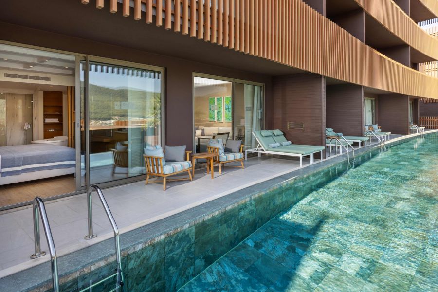 Хотелът разполага с общо 394 стаи, разпределени в 29 три-етажни блока, от които Sea view room (с изглед към море, 39 - 47 м²), Superior room (51 м²), Deluxe room (спалня със зона за сядане, баня - 80-85 м²), Family Room (1 спалня, отделна стая с 2 легла, 2 бани - 54 м²), Standard swim-up room (с директен достъп до общ басейн, тераса с два шезлонга - 39 м²), Superior swim-up room (с директен достъп до общ басейн, тераса с два шезлонга - 51 м²), Swim Up Family Room (2 спални, 2 бани, с директен достъп до общ басейн, тераса с два шезлонга - 54 м²), Deluxe Swim Up Room (с директен достъп до общ басейн, тераса с два шезлонга, 1 спалня със зона за сядане, баня с вана и отделна душ кабина, 80-85 м²), Exclusive Swim Up (с директен достъп до общ инфинити басейн, спалня, баня с вана и отделна душ кабина, гардеробна зона, тераса с два шезлонга и джакузи; премиум услуги, закуска в ресторантите Hasır и Pascarella, ексклузивен минибар, безплатен румсървис, безплатни перални услуги, при минимум 7 нощувки, частна плажна кабана, личен иконом (butler service), частно бъги с иконом, кожен ключодържател и плажна чанта - 90 м²), Family Suite (фамилна стая суит, хол, кухненски бокс, спалня, детска спалня с 2 единични легла, 2 отделни бани, тоалетна, кът за сядане, работно бюро и балкон - 90 м²), Family Suite Room Swim Up (фамилна стая суит, директен достъп до басейна, 1 спалня, 1 отделен хол, 2 бани, кухненски бокс - 90 м²), Exclusive Villa (вила на 2 етажа, на 1 етаж има всекидневна, спалня и баня, 2 етаж две спални и две бани, 1 тераса и собствен басейн, всички спални имат балкон, по-богато разнообразие в мини бара, иконом), Superior Villa (3-етажна вила, кухня, всекидневна, сауна и баня на първия етаж, 4 спални на 2 етаж, тераси и собствен басейн, джакузи, маса за вечеря, богато разнообразие в мини бара, иконом - 300 м²), Presidental Villa (3-етажна вила, разположена в градините на хотела, кухня, всекидневна, хамам, сауна на първия етаж, 6 спални, турска баня, собствен басейн, сауна, асансьор, иконом - 530 м²).