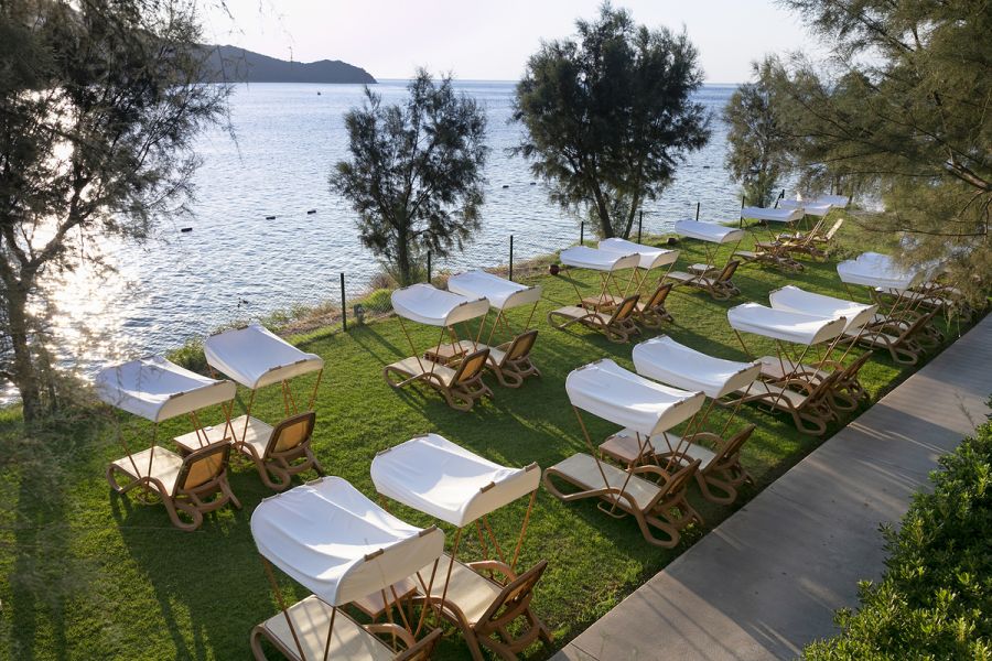 Собствен пясъчен плаж. Кей (използва се също така и за яхти). Чадъри, шезлонги на плажа и при басейна - безплатно.