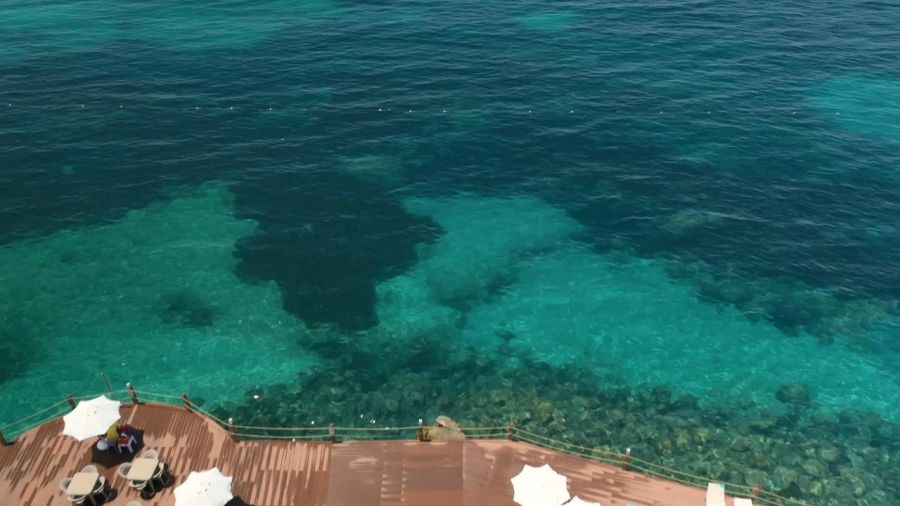 Собствен, пясъчен и платформа. Чадъри, шезлонги и плажни кърпи на плажа и при басейна – безплатно.