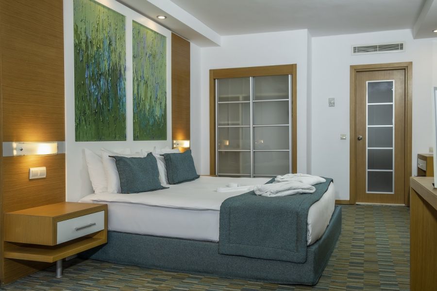 Хотелът разполага с 329 стаи, от които 62 стандартни стаи с изглед градина в основната сграда без балкон (25 -30 кв.м), 136 стандартни стаи с изглед море в основната сграда без балкон (25-30 кв.м), 64 клубни стандартни стаи в анекс сграда с балкон (35 кв.м), 5 суита в основната сграда без балкон (55 кв.м). Всички стаи са оборудвани с климатик, телевизор, телефон, баня с душ, сешоар, минибар, сейф (безплатен). Почистване на стаята и смяна на кърпите - всеки ден, смяна на спалното бельо - 3 пъти в седмицата.