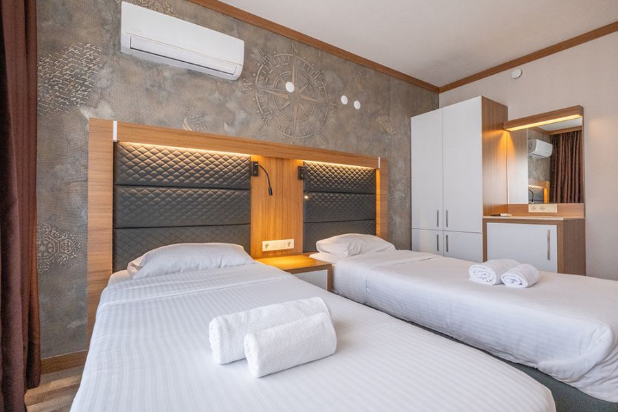 Хотелът разполага общо с 60 стаи (17-20 м2), по-голямата част от които са с изглед море (частичен или фронтален). Всички стаи са оборудвани с климатик, телевизор, телефон, баня с душ, сешоар, минибар, сейф (безплатно), балкон.