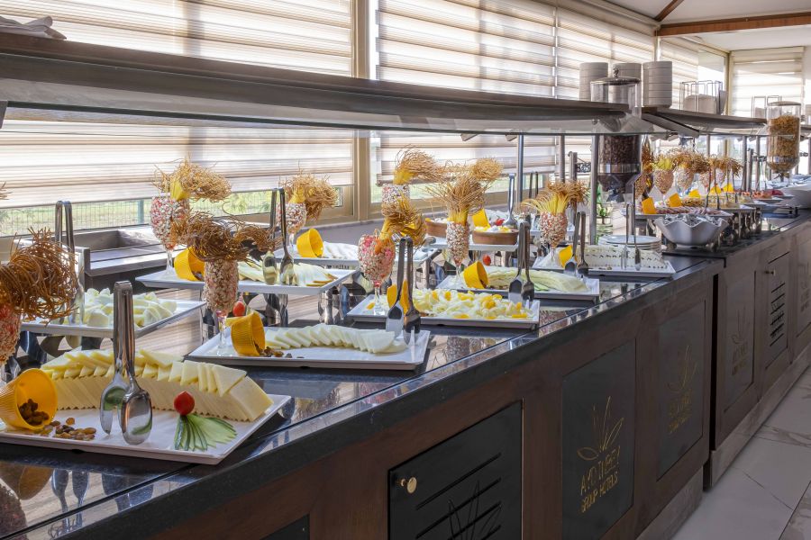Основен ресторант, 3 а-ла-карт ресторанта (рибен, барбекю, италиански – 1 безплатно посещение на 1 от ресторантите при минимум 7 нощувки, с предварителна резервация), 2 снек ресторанта, сладкарница, 5 бара, 3 открити и 1 закрит басейн, 4 водни пързалки, СПА център, магазини, 2 конферентни зали.