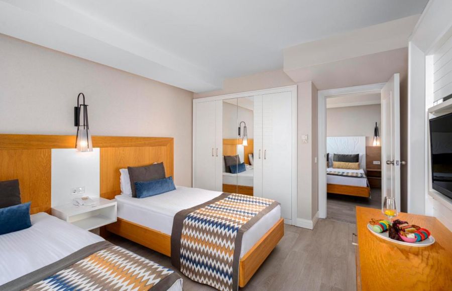 Хотелът разполага с 398 стаи. от които 361 Standard rooms (29 м2), 29 Jacuzzi rooms (29 м2) , 18 Family rooms (39 м2 - 2 спални с преходна врата, 1 баня). Всички стаи са оборудвани с: централен климатик, баня с душ, сешоар, телевизор, телефон, мини - бар (ежедневно се зарежда с вода, безалкохолни напитки, бира, шоколад и чипс), сейф (безплатно).