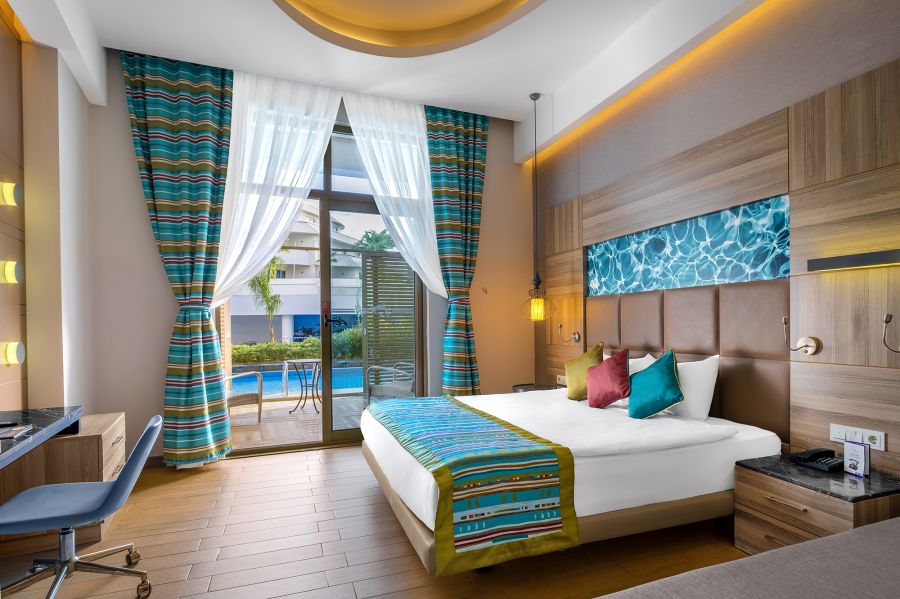 Стаи в основна и допълнителна сгради: 558 Standard Room (28-33 м2), 180 Superior Room (33 м2), 24 Swim Up Room (с достъп до общ басейн чрез стълби от терасата – 33 м2), 10 Swim Up Family Duplex Room (2 отделни спални, разположени на 2 етажа, 1 баня, с директен достъп до общ басейн от терасата - 49 м2), 90 Family Duplex Room (2 отделни спални, разположени на 2 етажа, 1 баня – 35-45 м2), 34 Family Room With Bunkbed (2 отделни спални, 1 от които с двуетажно легло, 1 баня – 35-45 м2), 42 Family Duplex Suite (2 спални, разположени на 2 етажа, 2 бани – 50-85 м2), 14 Suite (2 отделни спални, 2 бани, разполагат със сауна и джакузи - 53-58 м2), 11 Accessible Room (пригодени за хора с ограничена подвижност – 30-33 м2).