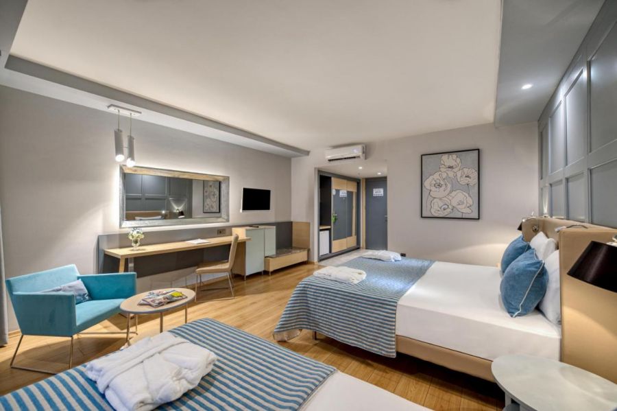 Хотелът разполага с общо 335 стаи, разположени в 9-етажна основна сграда, от които 125 Standard land view room (изглед суша, 28 - 30 м2), 60 Standard side sea view room (частичен изглед море, 28 - 30 м2), 82 Standard sea view room (директен изглед море, 28 - 30 м2), 10 Superior room (28 - 30 м2), 48 Family room (2 спални, 1 баня – 40 - 45 м2), 3 Swim Up room (с достъп до общ басейн – 28-30 м2), 7 Swim Up Dublex room (с достъп до общ басейн, 2 спални, 1 баня – 45 - 52 м2).
