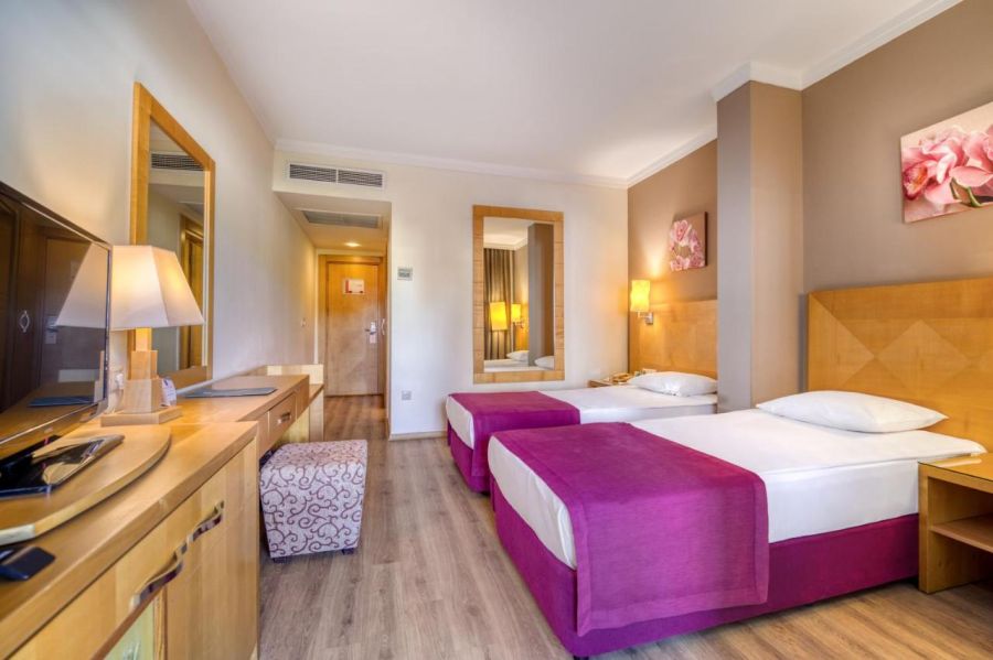 Хотелът разполага с общо 328 стаи, от които 239 стандартни стаи Standard Room Garden View (изглед градина – 20 м2), Standard Room Side Sea View (изглед частично море – 20 м2), 70 Large Room (изглед градина или страничен изглед море – 24 м2), 6 Duplex Family Room (2 спални, баня, изглед градина, 36-40 м2), 3 Family Sea View (2 спални, баня, изглед частично море, 36-40 м2).