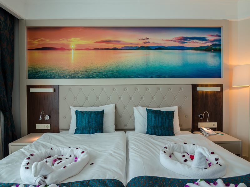 Хотелът разполага с общо 331 стаи, разположени в 6-етажна основна сграда, 301 стандартни стаи, от които Standard room land view (с изглед суша - 28 м2), Standard Room Side Sea View (частичен изглед море - 28 м2), 3  Handicapped room (пригодени за хора с ограничена подвижност, с изглед градина - 24 м2), 12 Family room (2 спални, 2 бани - 60 м2), 15 Deluxe room R.O.H (с изглед градина - 32 м2).