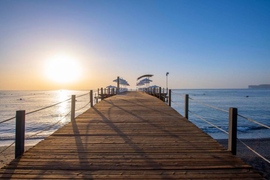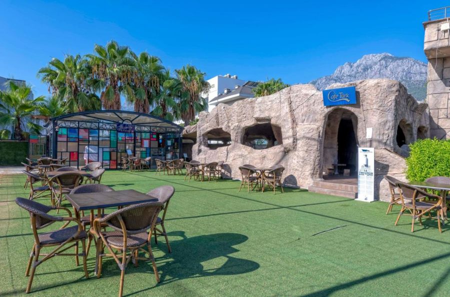 Основен ресторант, а-ла-карт ресторант (рибен - с предварителна резервация), 5 бара, сладкарница, открит и закрит басейн, водни пързалки, дискотека, амфитеатър, конферентни зали. За децата: Детски басейн с пързалки, анимация, мини клуб (4-12 г.), мини диско. Безплатни услуги: Сауна, турска баня, парна баня, фитнес, волейбол, анимация, паркинг. Платени услуги: Масаж, Спа център, фризьор, лекар, химическо чистене, билярд, рент -а-кар, тенис корт, тенис екипировка, осветление за тенис корт, магазини, водни спортове, WiFi интернет.