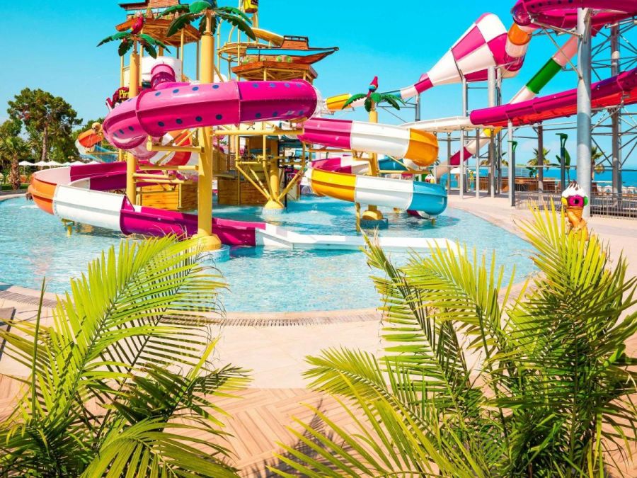 За децата: Детски открит басейн, 6 водни пързалки, мини клуб (4 – 12 г), мини кино, мини дискотека, детска площадка, бебешка кошара, столче за хранене в ресторанта (при наличност).