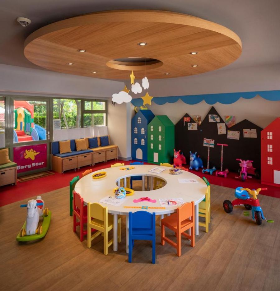 За децата: Детски бюфет, столче за хранене, открит и закрит (отопляем) детски басейн, аквапарк, детска площадка, мини клуб (4-12г), миди клуб (8 -11 г.), тийн клуб (12- 18 г.), мини диско, пяна парти, детска анимация, детегледачка – срещу заплащане.