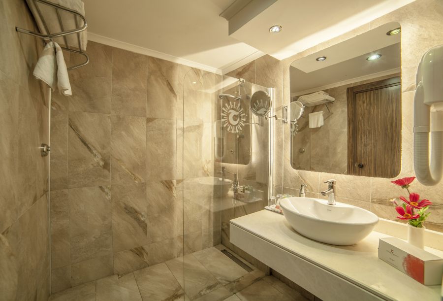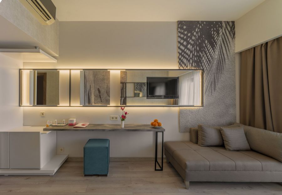 Стаи в основна сграда Main Building: 84 стаи Standard room (29 м2); 47 стаи Duplex rooms (44 м2) двуетажен мезонет, на първия етаж има две единични легла, а на втория спалня, с обща баня и тоалетна и балкон.