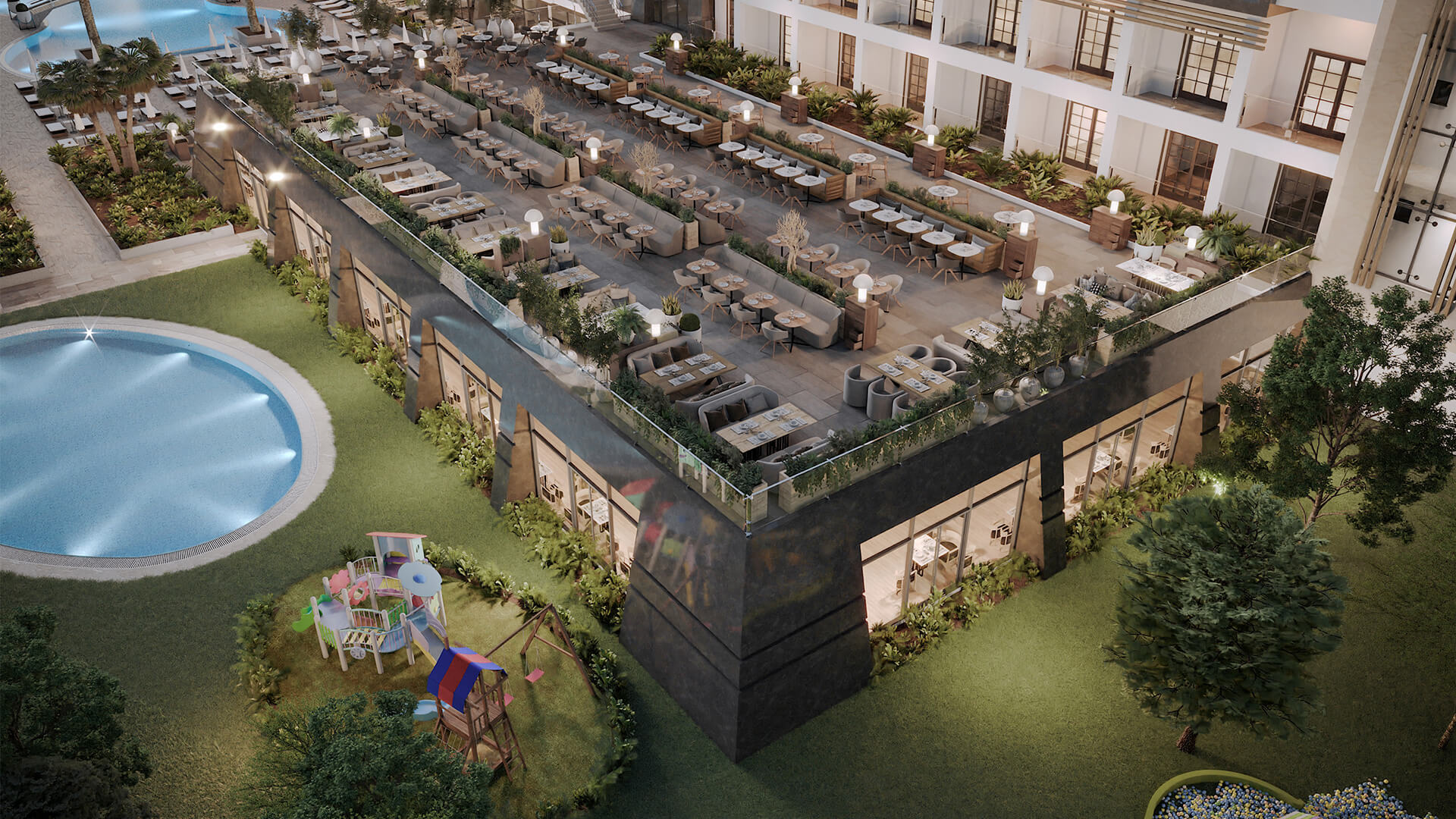 За децата: детски басейн, детска площадка, мини диско, мини клуб, детегледачка (платено).